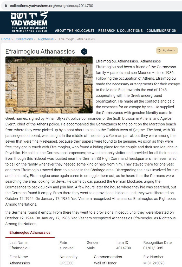 Για περισσότερες πληροφορίες, επισκεφθείτε την επίσημη σελίδα του Yad Vashem για τον Αθανάσιο Εφραίμογλου (ID:4014730).